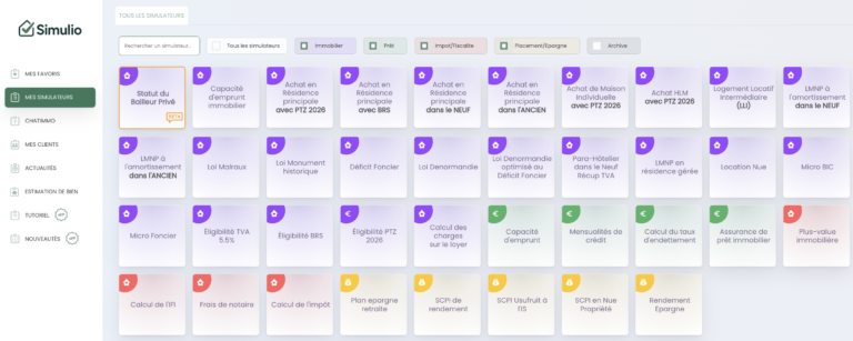 Simulio est la solution tout-en-un pour les projets immobiliers et financiers. Avec nos 33 simulateurs performants, vous pouvez explorer toutes les possibilités pour les projets de vos clients et les aider à prendre des décisions éclairées.